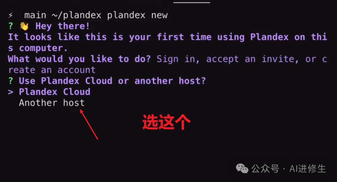 进入目录后,运行“plandexplandex new”命令,选择使用自己的服务器,