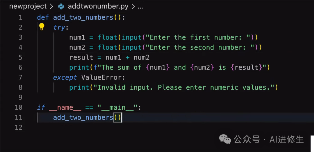 我将创建一个名为“addtwonumbe.py”的文件,并要求 Planex 编写一个加法程序。