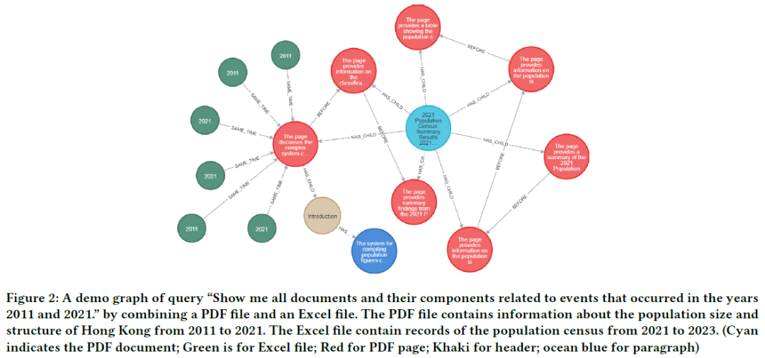 利用Docs2KG工具,可以将PDF和Excel文件的内容解析并融合,形成一个统一的知识图谱。通过对这个图谱进行查询,可以方便地提取所需的信息。通过可视化工具,可以清晰地看到PDF文件的引言部分提及了2011年和2021年的一些关键事件。