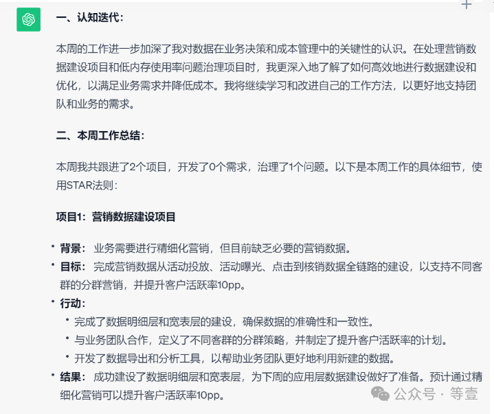 也可以让大模型给我们生成工作周报,提炼认知迭代:
