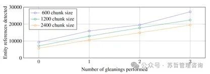 为了平衡效率和质量的需求,我们使用多轮“取精”(gleanings)的方法,最多达到指定的最大值,以鼓励LLM检测出先前提取轮可能遗漏的任何额外实体。这是一个多阶段的过程,首先要求LLM评估所有实体是否已提取出来,使用logit偏差值为100来强制做出是/否的决定。如果LLM回应说有实体遗漏了,那么接下来的持续性信息表明“在上次提取中遗漏了许多实体”,会鼓励LLM提取这些漏掉的实体。这种方法使我们能够使用更大的块尺寸而不降低质量(见图2),也不会强制引入噪音。