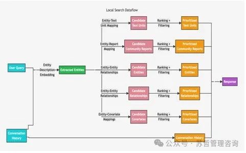1.叶级水平社区。叶级水平社区的元素概要(节点、边、协变量)按优先顺序排列,然后迭代地添加到LLM上下文窗口,直到达到令牌限制。优先顺序如下:按照每个社区边的组合源节点和目标节点度数(即总体重要性)递减的顺序,添加源节点、目标节点、关联协变量和边本身的描述。