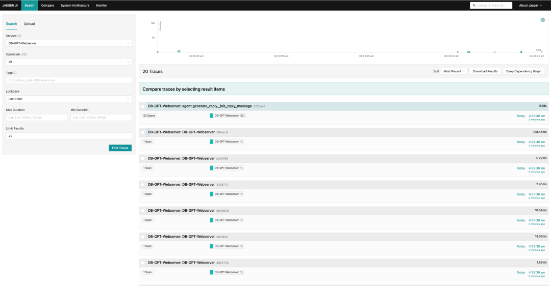 LLM_MODEL=meta-llama-3.1-8b-instruct ?internlm2.5,codegeex4-all-9b pipinstall-e".[observability]" dockerrun--rm--namejaeger\-eCOLLECTOR_ZIPKIN_HOST_PORT=:9411\-p6831:6831/udp\-p6832:6832/udp\-p5778:5778\-p16686:16686\-p4317:4317\-p4318:4318\-p14250:14250\-p14268:14268\-p14269:14269\-p9411:9411\jaegertracing/all-in-one:1.58 TRACER_TO_OPEN_TELEMETRY=TrueOTEL_EXPORTER_OTLP_TRACES_ENDPOINT=http://localhost:4317