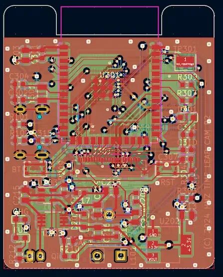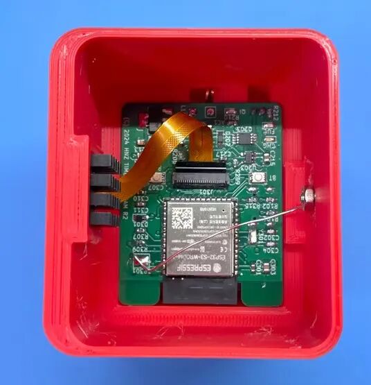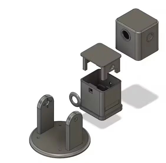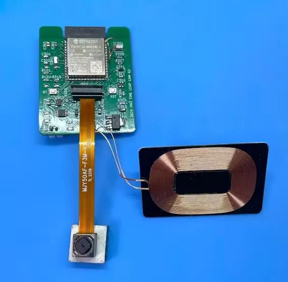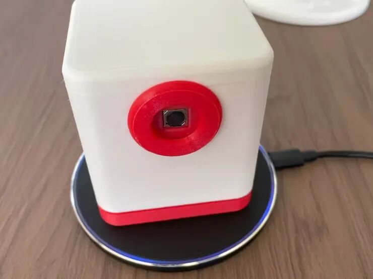 这款相机安装在使用 3D 打印机创建的外壳中。外壳设计有一定程度的防水性能,适合户外使用,尽管它不防水。在外壳的底部,安装了一个线圈以接收来自 Qi 无线充电器的电源,并将电池放置在该线圈上方。然后将PCB安装在电池上方,摄像头部分从前面凸出。