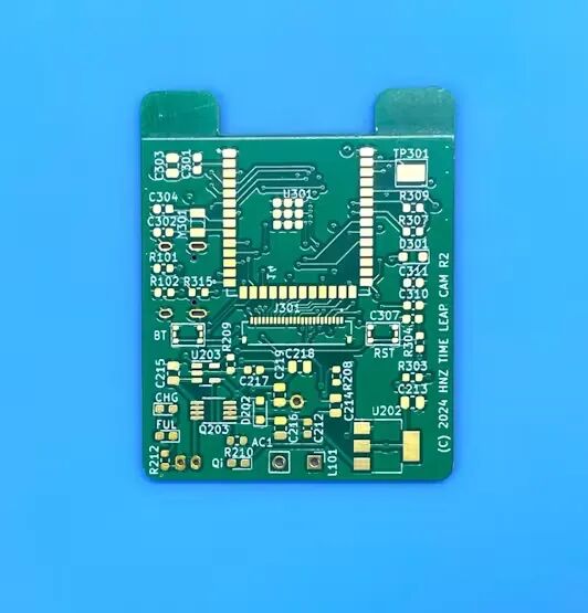 ESP32 eMMC 和摄像头接口 为了降低功耗,eMMC 和 Camera 电源由 ESP32-S3 控制。通过此控制,功耗低于 1.5 mW。eMMC线路的上拉电阻为100千欧,这也有助于减少功耗。 PCB布局 这里使用了 4 层定制 PCB。  订购PCB时,大部分参数可以保留默认值,但“最小孔径”应为0.25mm,“表面处理”应选择“沉金(ENIG)”。原因是最小通孔为0.25mm,如果eMMC焊盘不是“沉金(ENIG)”,焊盘上的焊料会略微凸起,没有适当的对齐就无法正确焊接。