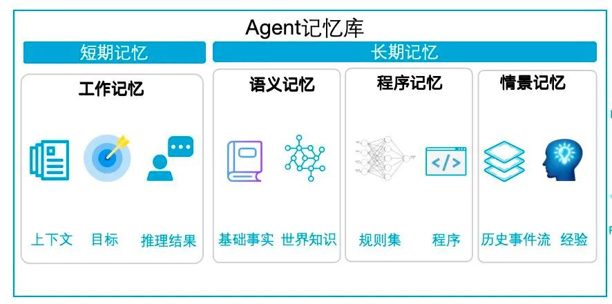 图源:《Cognitive Architectures for Language Agents》 Agents的认知架构包含多个关键要素,如感知、学习、推理和决策等。感知是获取外部信息的通道,就像我们的眼睛和耳朵感知世界一样,Agents 通过传感器收集数据。 学习则是不断优化自身能力的过程,通过大量的数据训练,提升对各种情况的理解和应对能力。例如,在自动驾驶领域,车辆中的Agents需要不断学习交通规则和不同路况的处理方式。 推理是根据已有的知识和信息进行逻辑思考,做出合理的判断。 决策则是基于推理的结果选择最佳的行动方案。 结合CoALA框架,我们按照信息的内容,将信息组织进Agent的多个记忆模块,包括短期工作记忆和三种长期记忆:情景记忆、语义记忆和程序记忆。ingFang SC", "Hiragino Sans GB", "Microsoft YaHei UI", "Microsoft YaHei", Arial, sans-serif;font-size: var(--articleFontsize);letter-spacing: 0.034em;">  工作记忆(Working Memory):反映Agent的当前情况,它存储了Agnet最近的感知输⼊、⽬标以及中间推理的结果。ingFang SC", "Hiragino Sans GB", "Microsoft YaHei UI", "Microsoft YaHei", Arial, sans-serif;font-size: 15px;letter-spacing: 2px;">长期记忆:程序记忆(Procedural Memory):存储⽣产系统本⾝Agent⾏为的规则集和程序。 语义记忆(Semantic Memory):存储一些基础知识、世界知识。 情景记忆(Episodic Memory):存储Agent过去的历史事件流或者行为经验。 ingFang SC", "Lantinghei SC", "Helvetica Neue", Helvetica, Arial, "Microsoft YaHei", 微软雅黑, STHeitiSC-Light, simsun, 宋体, "WenQuanYi Zen Hei", "WenQuanYi Micro Hei", "sans-serif";-webkit-font-smoothing: antialiased;word-break: break-word;color: rgb(38, 38, 38);letter-spacing: normal;text-wrap: wrap;background-color: rgb(255, 255, 255);text-align: justify;line-height: 1.75em;margin-bottom: 24px;">这些记忆组件共同构成了CoALA框架下Agent的记忆系统,使得Agent能够存储信息、进行推理、做出决策,并从经验中学习。ingFang SC", "Lantinghei SC", "Helvetica Neue", Helvetica, Arial, "Microsoft YaHei", 微软雅黑, STHeitiSC-Light, simsun, 宋体, "WenQuanYi Zen Hei", "WenQuanYi Micro Hei", "sans-serif";-webkit-font-smoothing: antialiased;word-break: break-word;color: rgb(66, 133, 244);letter-spacing: normal;text-wrap: wrap;background-color: rgb(255, 255, 255);text-align: center;line-height: 1.75em;margin-bottom: 24px;margin-top: 24px;">短期(工作)记忆是如何工作的?工作记忆在Agent的决策过程中起着关键作用,它与LLM、推理、检索等动作紧密配合,不断更新和处理信息,以支持Agent在不同情景下做出合适的决策和行动。信息处理(Grounding Action)将Agent执行动作后,得到的环境反馈处理成文本,输入到工作记忆中。 检索(Retrieval Action)将信息通过规则或密集检索等方式,从长期记忆中读入工作记忆中。 推理(Reasoning Action)使Agent能够处理⼯作记忆的内容以⽣成新的信息。与检索不同,推理是从⼯作记忆中读取并写⼊⼯作记忆。 ingFang SC", "Lantinghei SC", "Helvetica Neue", Helvetica, Arial, "Microsoft YaHei", 微软雅黑, STHeitiSC-Light, simsun, 宋体, "WenQuanYi Zen Hei", "WenQuanYi Micro Hei", "sans-serif";-webkit-font-smoothing: antialiased;word-break: break-word;color: rgb(66, 133, 244);letter-spacing: normal;text-wrap: wrap;background-color: rgb(255, 255, 255);text-align: center;line-height: 1.75em;margin-bottom: 24px;margin-top: 24px;">长期记忆是如何工作的?长期记忆主要是通过学习动作(Learning Action)将信息写入不同的长期记忆模块中来实现的,其中不同记忆类型学习机制不同:程序记忆的更新:更新推理、检索、新学习或者决策的方法。 语义记忆的更新:将世界模型中一些基于事实归纳的信息写入语义记忆。LLM通过推理原始经验并将结果推论存储在语义记忆中,为工作记忆中上下文理解等提供依据。 情景记忆的更新:用“经验”更新情景记忆。Agent通常存储情景轨迹以更新或建立策略。Agent检索情景记忆中的附加经验可以作为推理或决策的示例。 以上这些信息会在Agent需要使用的时候,根据内容重新检索,并存入工作记忆中。在我们的实践中,以销售管理场景举例,当销售询问线索挖掘Agent,“历史上是否有类似成功签单案例”时,Agent会根据当前客户画像检索情景记忆中类似客户的签单项目,为销售提供商机建议和指导。这就是一个调用情景记忆,并存入工作记忆的过程。 ingFang SC", "Lantinghei SC", "Helvetica Neue", Helvetica, Arial, "Microsoft YaHei", 微软雅黑, STHeitiSC-Light, simsun, 宋体, "WenQuanYi Zen Hei", "WenQuanYi Micro Hei", "sans-serif";-webkit-font-smoothing: antialiased;word-break: break-word;color: rgb(66, 133, 244);letter-spacing: normal;text-wrap: wrap;background-color: rgb(255, 255, 255);text-align: center;line-height: 1.75em;margin-bottom: 24px;margin-top: 24px;">Agent记忆的实现Agent的记忆是如何实现的?首先,我们先定义一个概念,我们把Agent不断通过跟环境的进行交互、拿到反馈、做出动作,直到目标实现,这样一个不断迭代的过程称之为“Trial”。用a表示Agent做出的动作,用o表示Agent做出动作后环境的反馈,则一个Trial可以表示为: ingFang SC", "Lantinghei SC", "Helvetica Neue", Helvetica, Arial, "Microsoft YaHei", 微软雅黑, STHeitiSC-Light, simsun, 宋体, "WenQuanYi Zen Hei", "WenQuanYi Micro Hei", "sans-serif";-webkit-font-smoothing: antialiased;word-break: break-word;color: rgb(153, 153, 153);text-align: center;max-width: 690px;letter-spacing: normal;text-wrap: wrap;background-color: rgb(255, 255, 255);">该定义来自于《A Survey on the Memory Mechanism of Large Language Model based Agents》ingFang SC", "Lantinghei SC", "Helvetica Neue", Helvetica, Arial, "Microso