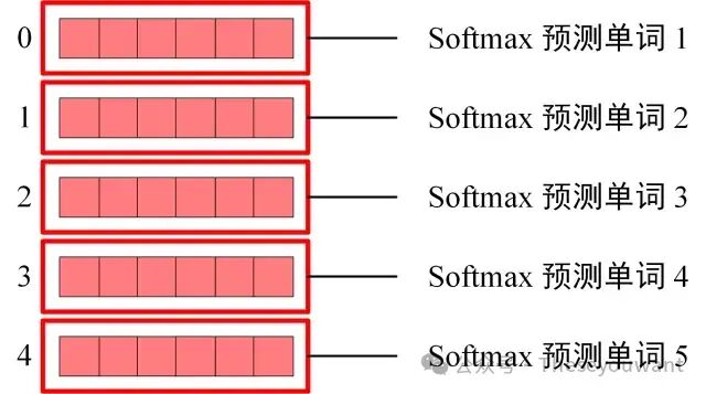 Softmax 根据输出矩阵的每一行预测下一个单词: