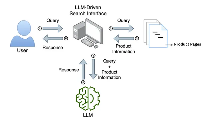图1:论文提及的 LLM 驱动的搜索流程,作者进行了轻微修改。