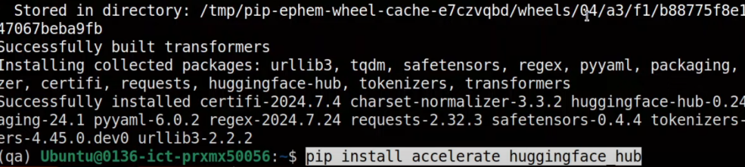 接下来,我们安装Hugging Face Hub和Accelerate库。