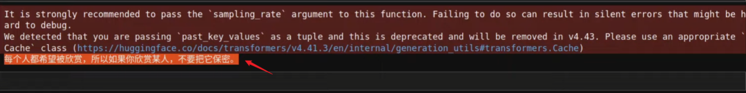 好了,模型已经给出了响应,是中文翻译的输出,这是我们在提示中要求的。