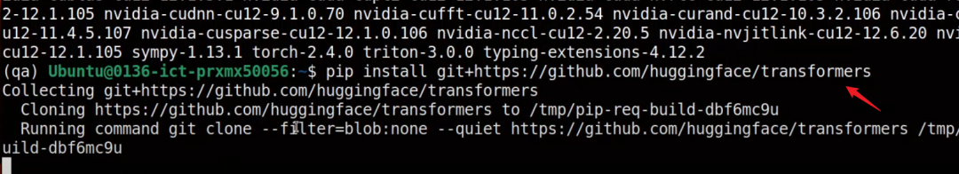 然后我还将从源代码安装Transformers库,因为这个模型非常新,PyPI上还没有提供这个版本。