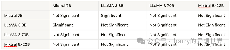 表 2 显示了 Dunn 事后检验的结果,比较了不同语言模型的性能。每个单元格表示相应模型之间的性能差异是否在 5% 显著性水平下具有统计显著性。“显著”表示统计显著性差异(p 值 ≤ 0.05),而“不显著”表示无统计显著性差异(p 值 > 0.05)。