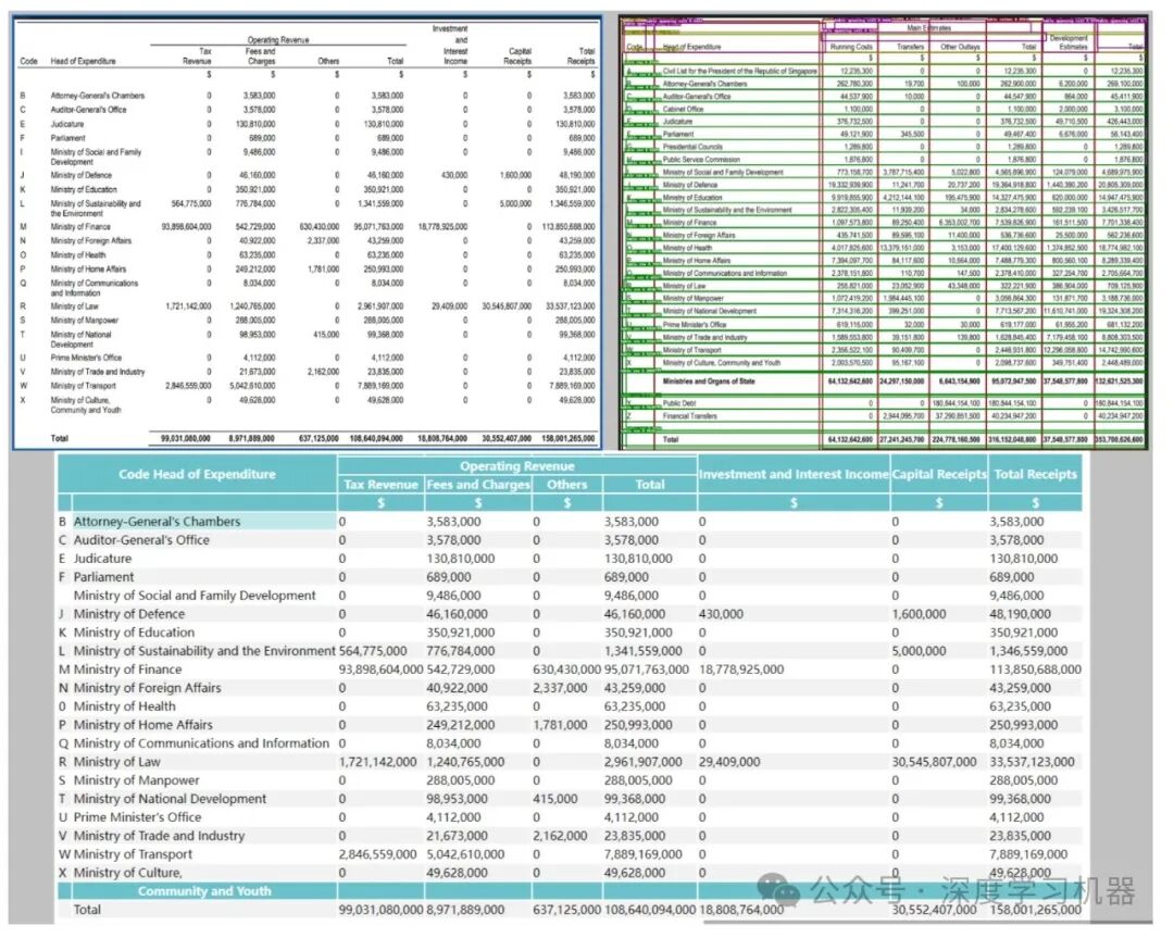 执行命令: pythondeepdoc/vision/t_recognizer.py--inputs=path_to_images_or_pdfs--threshold=0.2--mode=layout--output_dir=path_to_store_result 表格结构识别表的结构可能非常复杂,比如多层次结构标题、跨单元格以及行列结构不统一等。表结构识别针对表格内容定义了5种类别: •列 •行 •列标题 •行标题 •合并单元格
