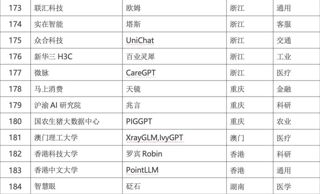国内大模型有通用模型和垂直应用领域的大模型,以下是附录的所有184个大模型的情况,大家可以根据自己实际情况选用。