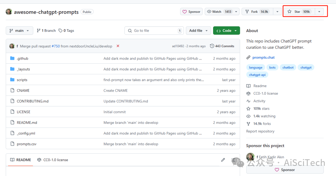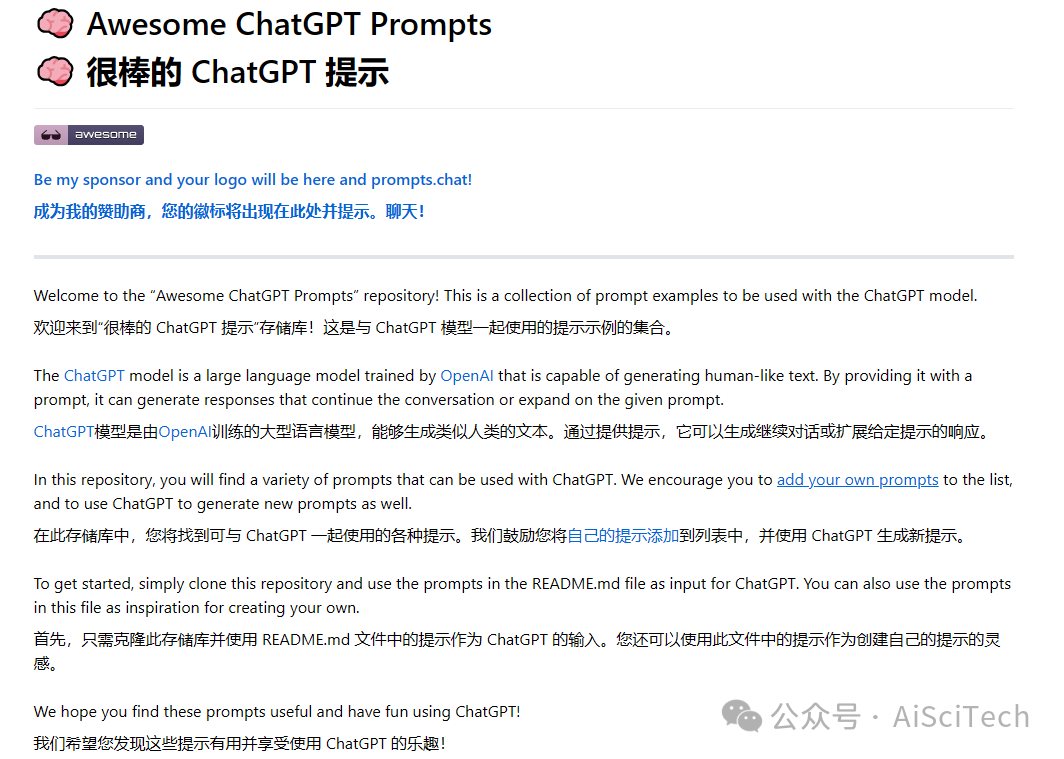 • 第一步:访问 Awesome ChatGPT Prompts 网站。