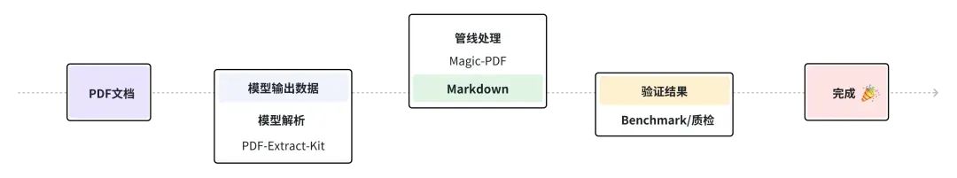 用到的模型: 布局检测:使用LayoutLMv3微调出来的检测模型进行区域检测,如图像,表格、标题、文本等; 公式检测:使用基于YOLOv8自研的公式检测模型进行公式检测,包含行内公式和行间公式; 公式识别:使用自研的UniMERNet公式识别模型进行公式识别; 光学字符识别:使用PaddleOCR模型进行文本识别; ● 管线处理,支持多种格式输出 模型处理的数据会输入管线,进行后处理:确定块级别顺序,删减无用元素,依靠版面对内容排序、拼装,保证正文流畅。处理方式包括:坐标修复、高iou处理、图片、表格描述合并、公式替换、图标转储、Layout排序、无用移出、复杂布局过滤等。
