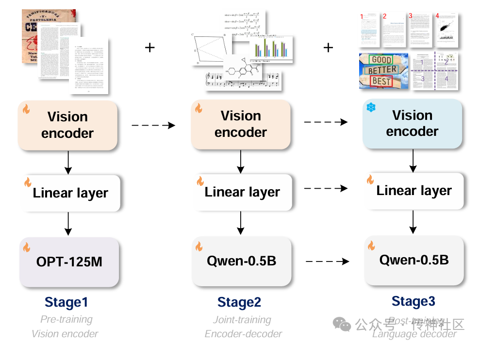 GOT-OCR2.0 的编码器基于 Vision Transformer (ViT),具备高压缩率,能够将输入图像的像素压缩为更小的 tokens,使得模型在处理高分辨率图像时既能保证准确性,又能降低计算资源的消耗。 - 长上下文解码器