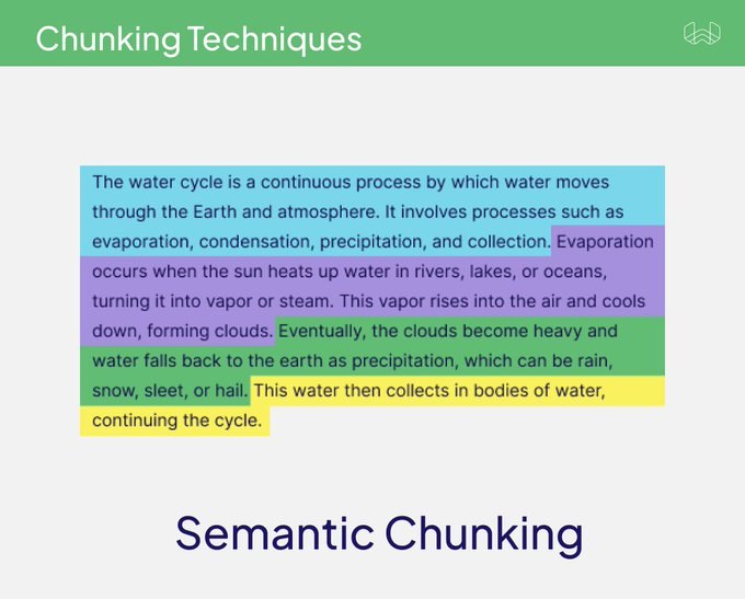 • 方法:将文本分成有意义的单位(如句子或段落),向量化后基于余弦距离合并成块。
