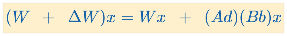 数学上,这种方法是通过修改线性层中的权重矩阵 ΔW 来实现的: