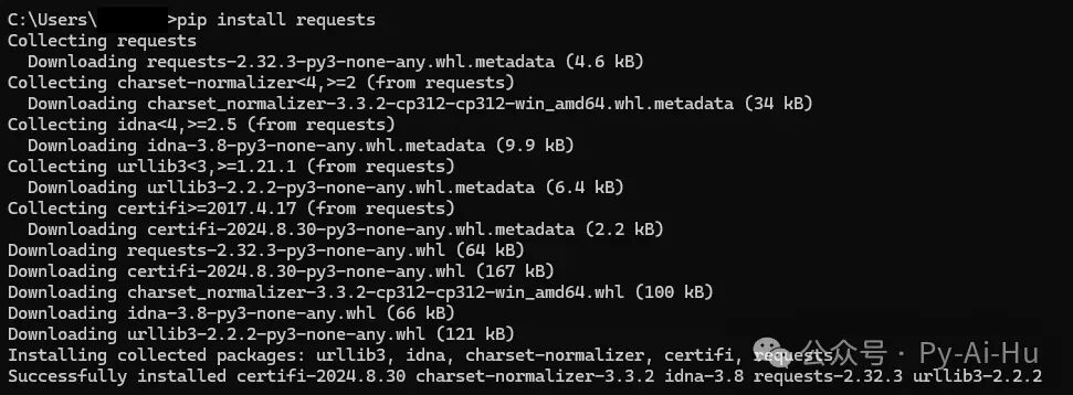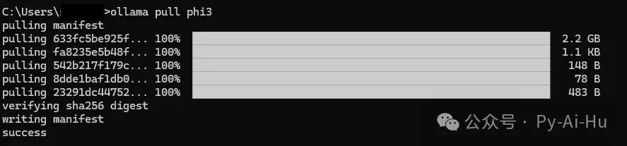 输入命令以在 Python 中使用 Phi-3。 在命令提示符下键入 当Python包下载完成并显示“成功安装...”消息时,该过程已完成。