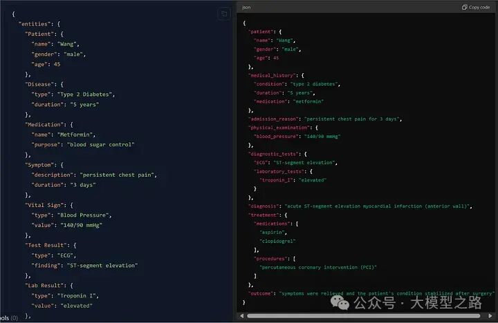 在提取公司名称、成立年份、地址等关键信息时,两者均能够准确、清晰地提取出所需信息,并以JSON格式输出。然而,在提取医疗术语、实体和关系等复杂信息时,GPT-4o表现出了更高的准确性和清晰度。