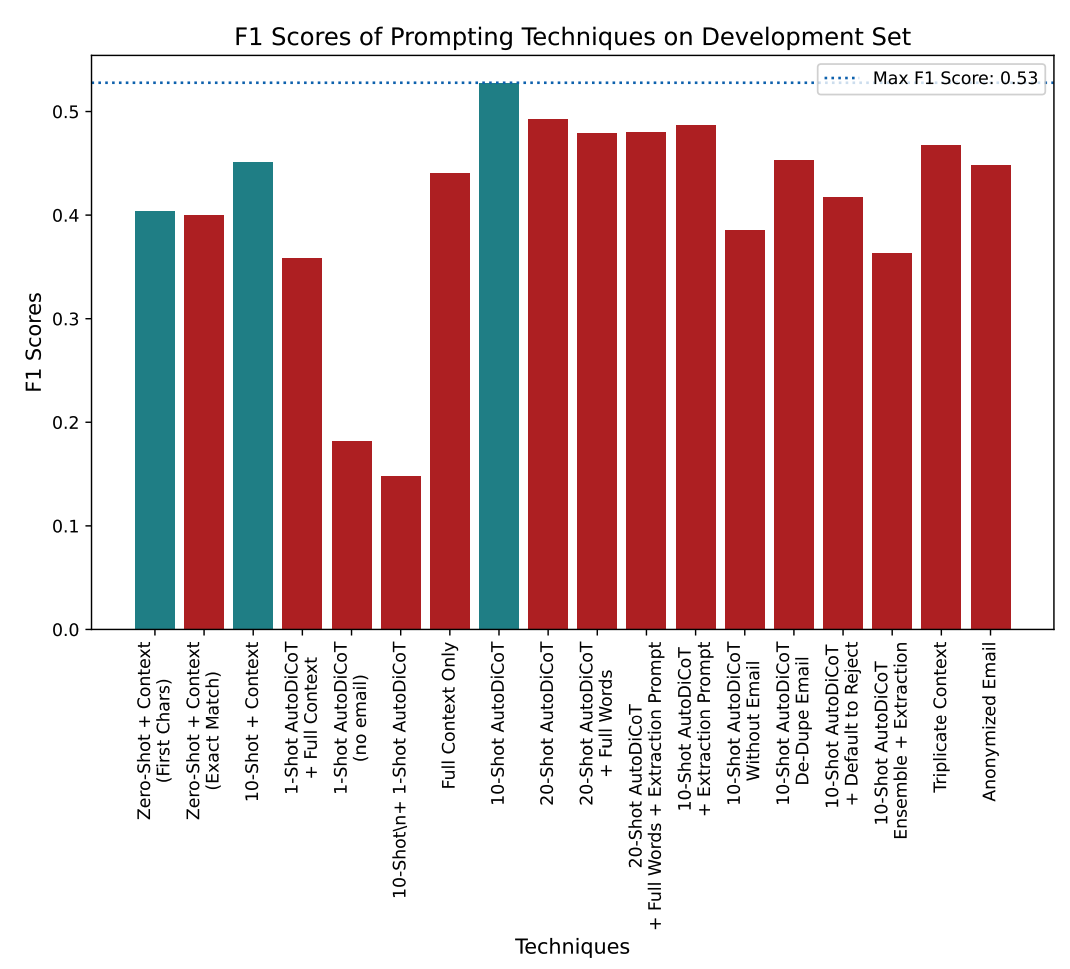 零样本作为基线,我们直接通过模型运行问题,不使用任何提示技术。对于这个基线,我们使用了两种格式以及三种措辞变化的基础指令。因此,在这个基准测试中,有六种方式通过2800个问题。这没有包括任何范例或思维引导器。