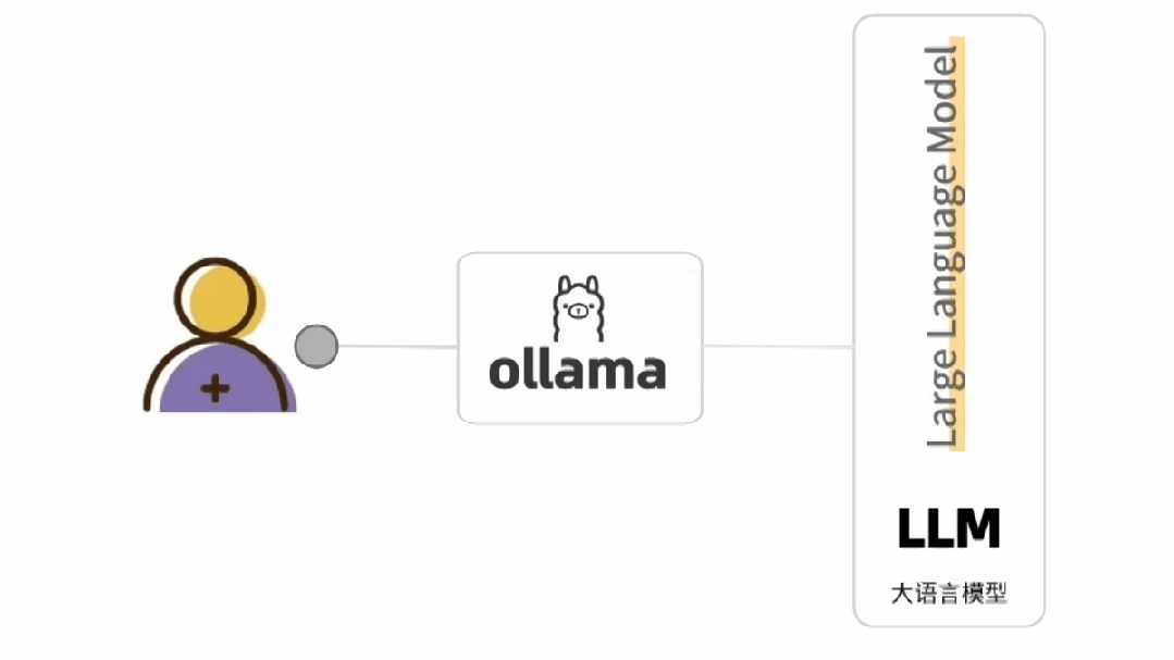 这个过程就是ollama去帮我们部署运行大模型,而且ollama还是我们和大语言模型之间的桥梁,帮助我们和大模型进行交流,这个过程不需要任何网络,全是在我们本地的计算机完成的。