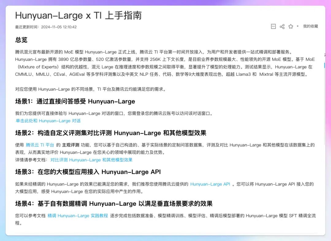 目前,混元Large模型已上架腾讯云TI-ONE训练平台,支持在线精调专属模型。