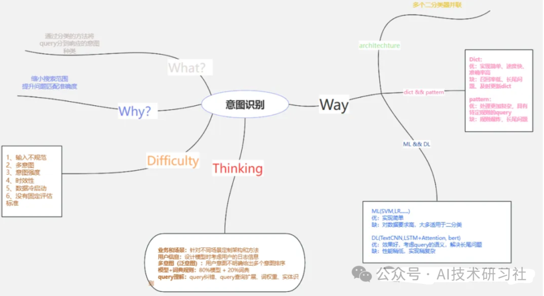 常用的意图识别方法包括: 规则模板匹配:通过人工设定模板,如“从[地点]到[地点]的航班”,将用户输入与模板匹配,从而判断意图。虽然精确度高,但需大量人力维护,不易推广。 统计机器学习:通过提取文本特征,如词性标注和词向量化表示,借助支持向量机等模型进行分类。适合简单的分类,但在复杂意图下效果有限。 深度学习:借助神经网络和预训练模型,无需人工设计特征,自动完成意图分类。尽管效果好,但需要大量标注数据。