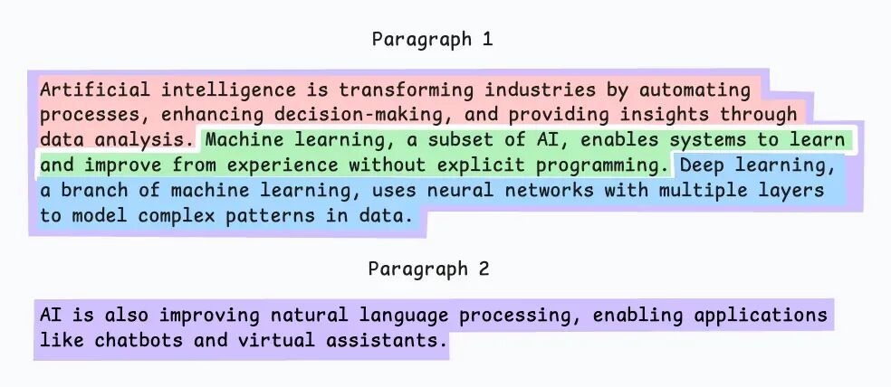 由于直接切分可能会破坏语义流畅性,建议在连续段落间保留一些重叠(如上图的蓝色部分)。