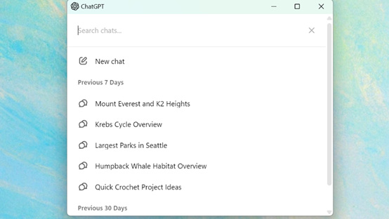 如果不小心关闭了伴侣聊天窗口,你可以通过访问ChatGPT应用侧边栏的聊天历史来继续对话,确保不会丢失任何聊天内容。