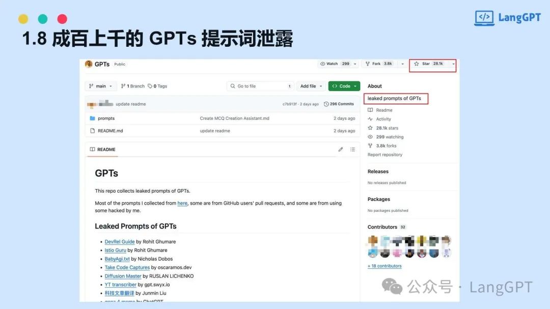 而且我们可以看到成千上万的非常好的,非常优质的智能体的提示词被泄露出来,在开源社区获得了非常多的关注。并且这个事情到现在都还在持续,这也是令我震惊的。