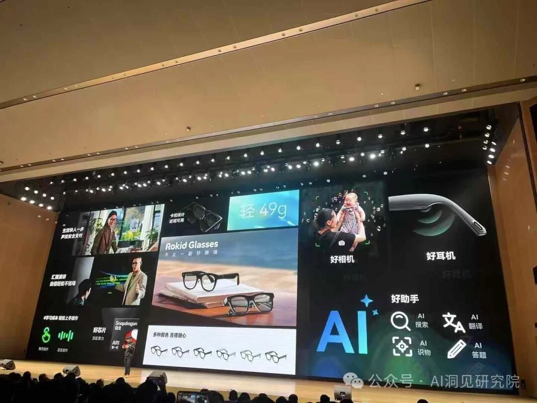 AI 在Rokid眼镜上的应用,大逻辑是把手机上高频的多模态AI场景和应用做一遍,但效率可以高一倍或者体验得以升级。