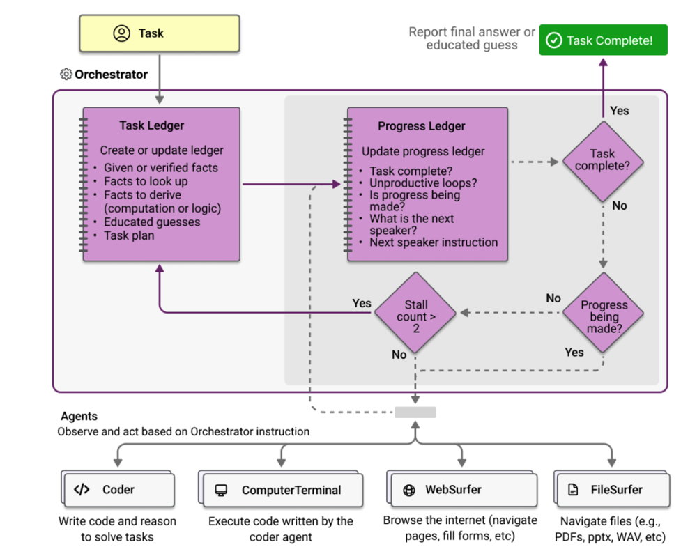 微软业务应用程序和平台首席副总裁Charles Lamanna提出了“Agent网格”概念,这是微软AI Agent战略的核心。该网格将是一个互联系统,多个AI Agent协作完成复杂任务,而不是单独运行。目前,微软的Copilot Studio主要支持基于聊天触发的Agent。例如,在企业场景中,销售Agent可以触发库存Agent检查库存情况,随后库存Agent通知客户服务Agent更新客户信息。这一系统由三部分组成:自主Agent、编排层和实时监控工具。自主Agent能够检测事件并触发动作,无需人工干预;编排层协调多个专业Agent的工作,确保各个Agent之间能够无缝协作;实时监控工具提供Agent工作流程的透明度,帮助企业跟踪进展。 最近,微软的研究团队基于企业Autogen框架开发了Magnetic-One系统,建立了一个复杂的Agent等级结构。在这个系统中,管理Agent负责任务的全局调度,专业Agent专注于执行具体工作。据VentureBeat报道,微软在Agent开发方面的技术能力已经与Anthropic和谷歌等公司相当。微软还计划将这一架构应用到例如OmniParser等工具中,以提升Agent解析用户界面元素的能力。目前,这些研究正在向生产环境过渡,但具体时间和实施细节尚未公布。