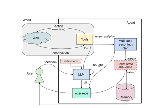 Reasoner模块还需要能够形成和更新关于用户状态的信仰,这些信仰以结构化语言对象的形式存储在记忆中。这种信仰建模是Reasoner模块的关键特征,它使得AI Agent能够更好地理解用户的需求和意图,从而提供更准确的服务。