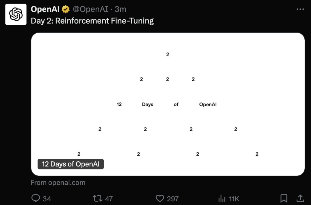 OpenAI Day2!这两天的科技狂欢简直比追世界杯还兴奋 —— 谁能想到,熬夜追的不再是球赛,而是一次次期待会突破想象的科技发布!