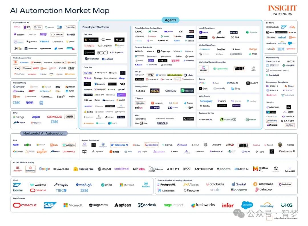 上期说了Claude正在通过MCP打造AI万物互联,重新制定AI生态玩法。 MCP发布之后很多人忽然醒悟,原来还可以这样对接现成的应用,而不需要新打造一个GPTs或Agents(智能体)。 先看看这张AI自动化商业地图,单单是智能体开发框架都几十个,这里还没列全。