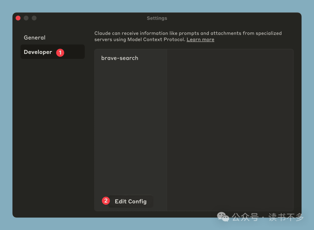打开 Claude 客户端的设置,点击 Developer - Edit Config