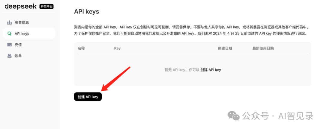 第一步:创建 deepseek API Key