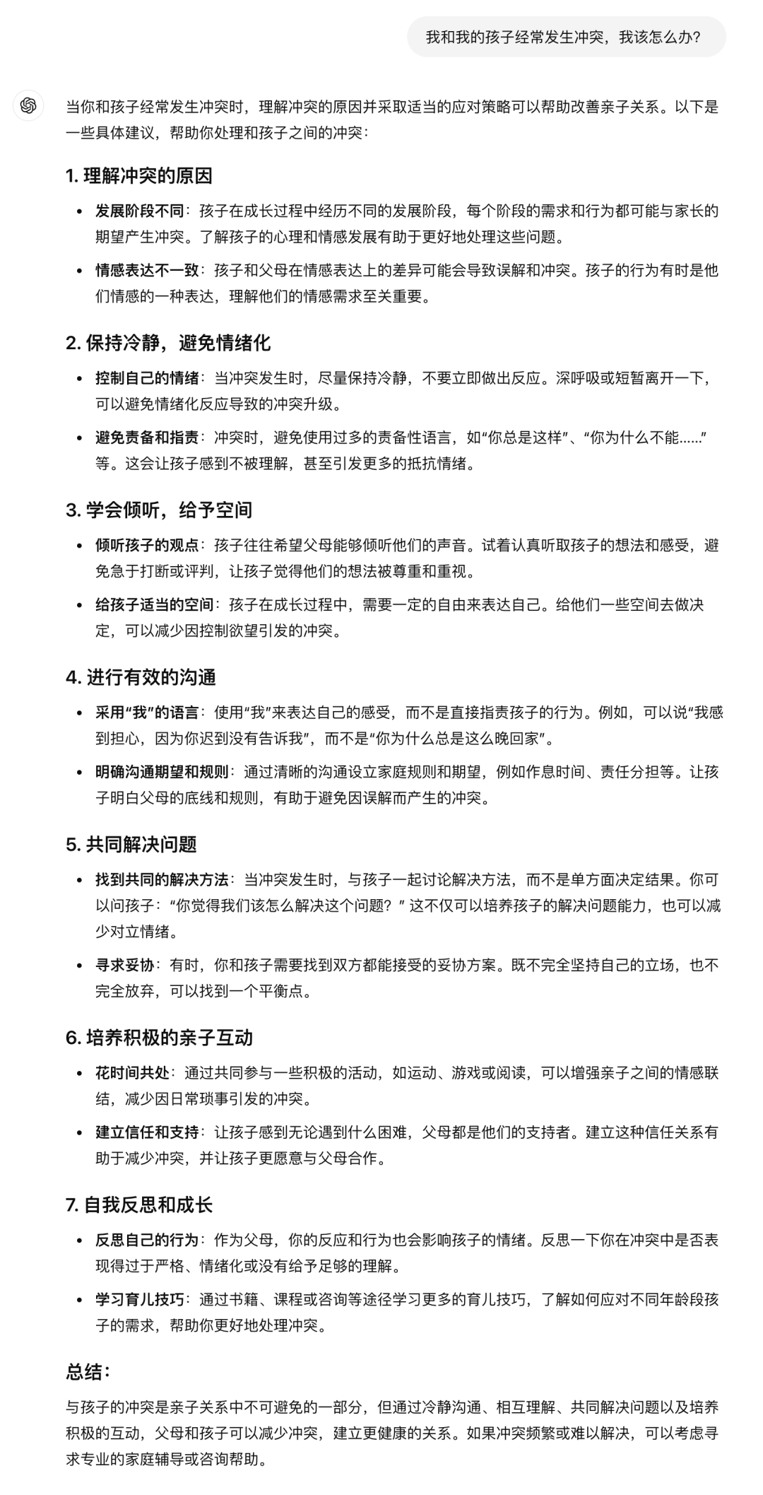 (3)冲突解决:让 AI 协助解决家庭教育问题