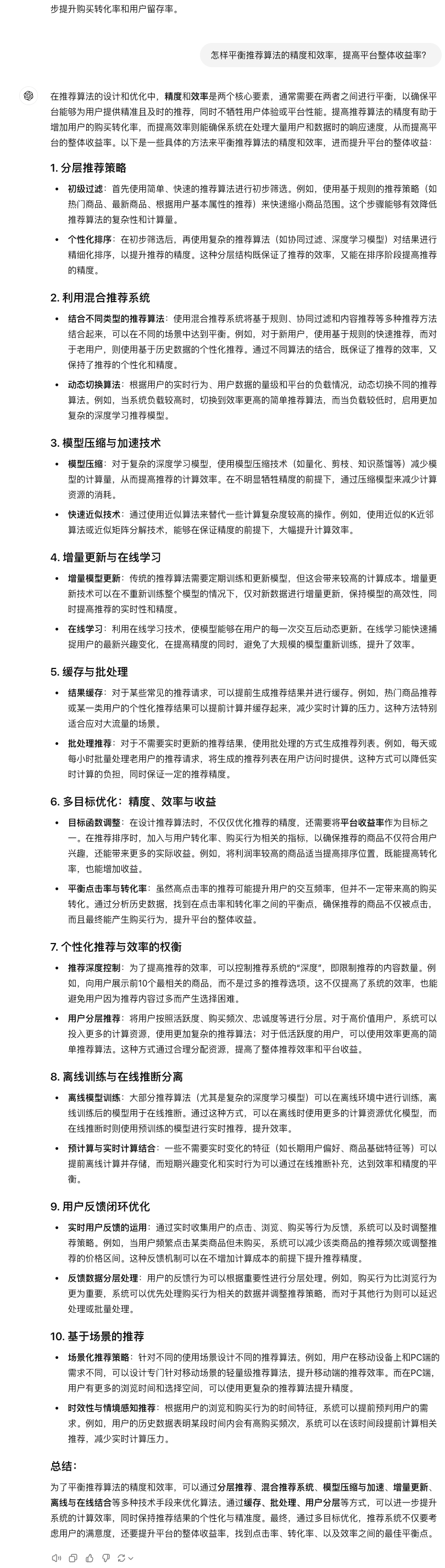 怎样平衡推荐算法的精度和效率,提高平台整体收益率?
