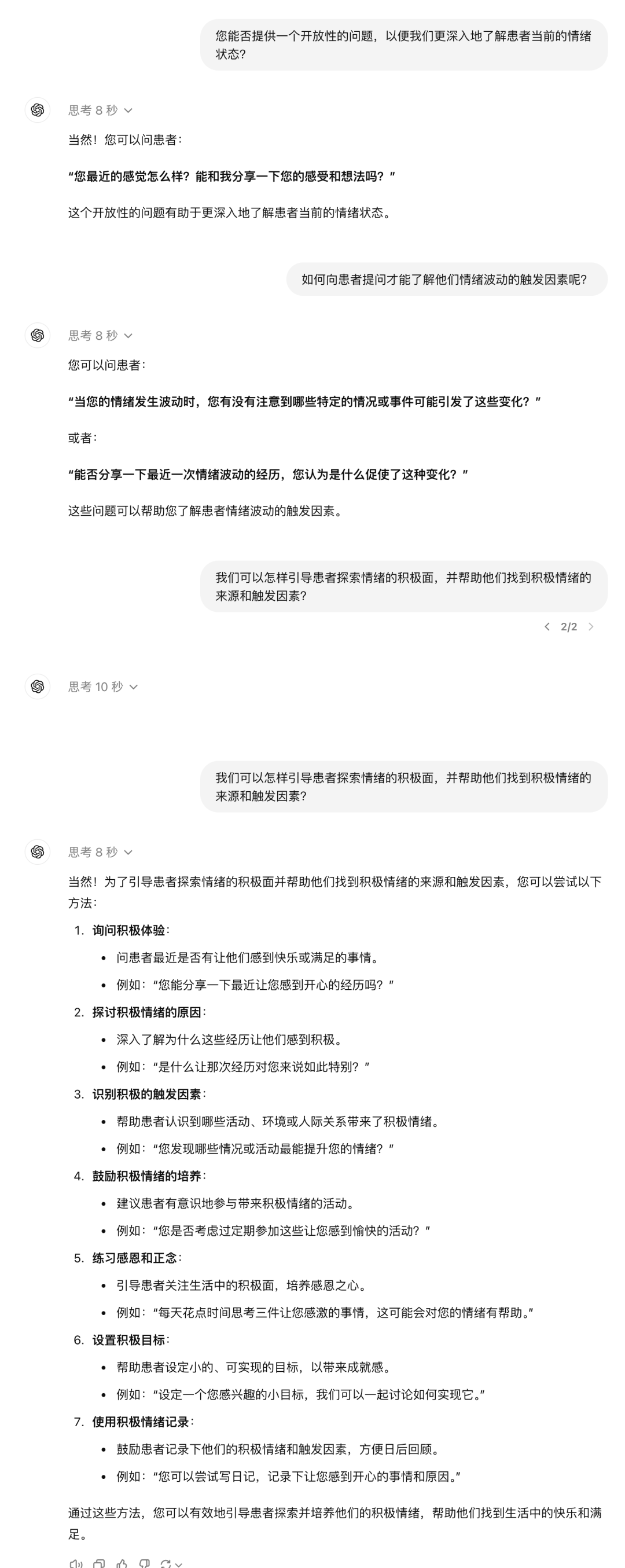 在心理咨询中使用情绪分析提问可以帮助咨询师更好地了解患者的情绪状态、情感体验以及潜在的心理问题。