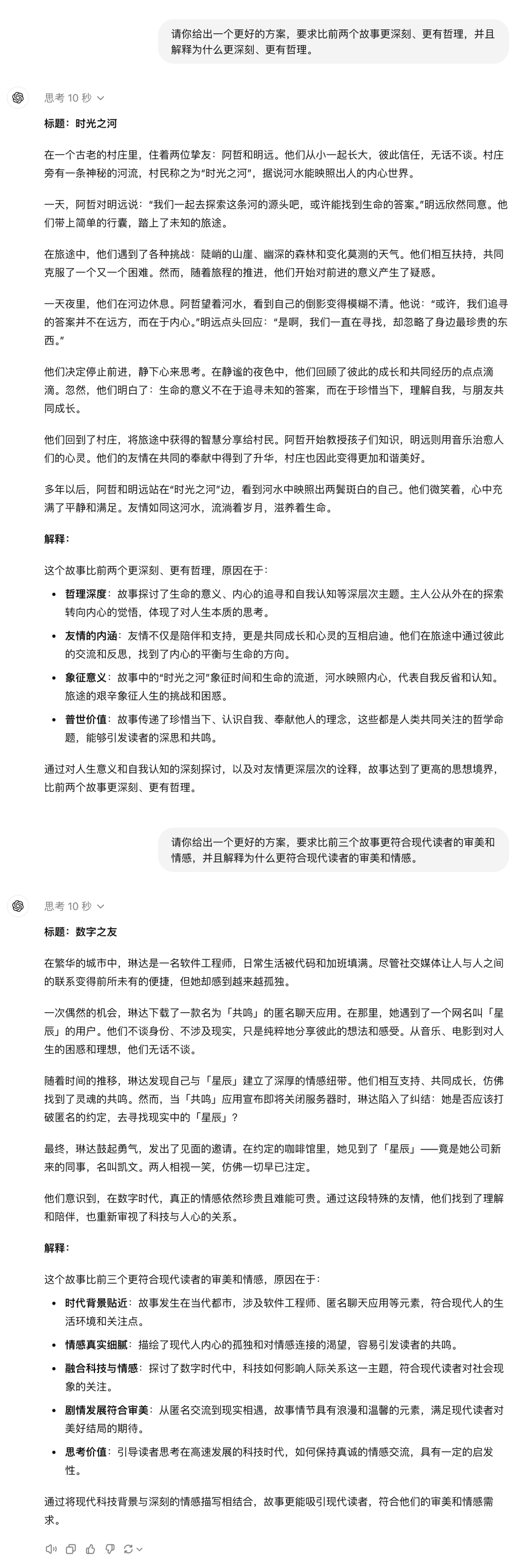 请你给出一个更好的方案,要求比前两个故事更深刻、更有哲理,并且解释为什么更深刻、更有哲理。