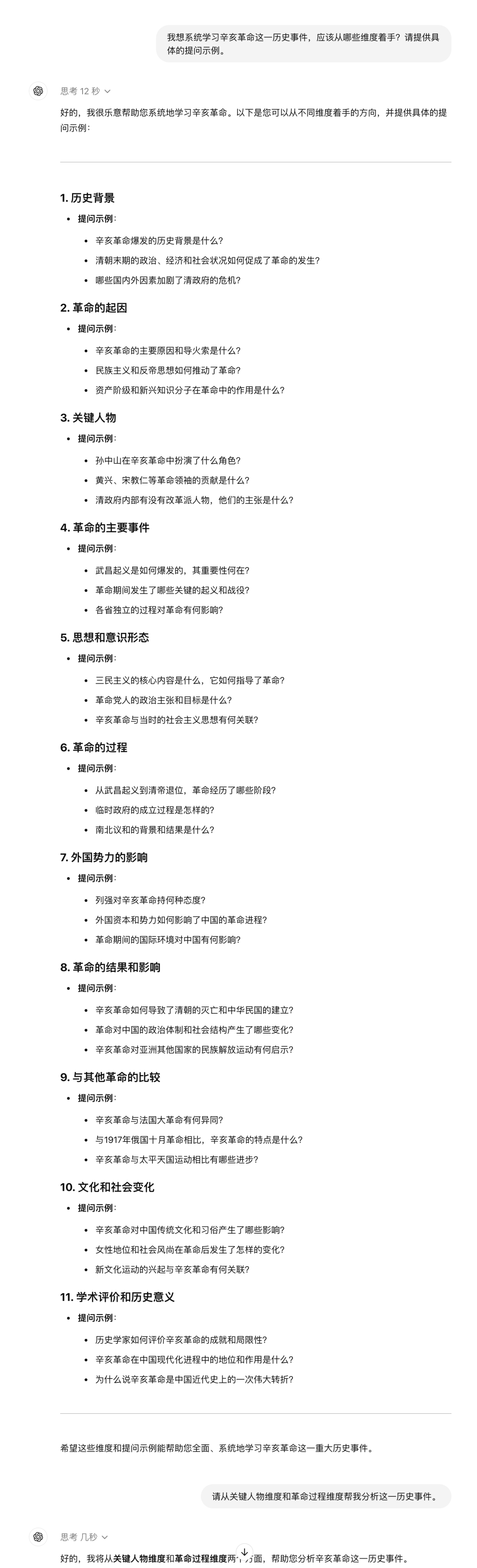 在历史研究领域,使用复合型提问可以让 AI 帮你更好地理解历史事件。