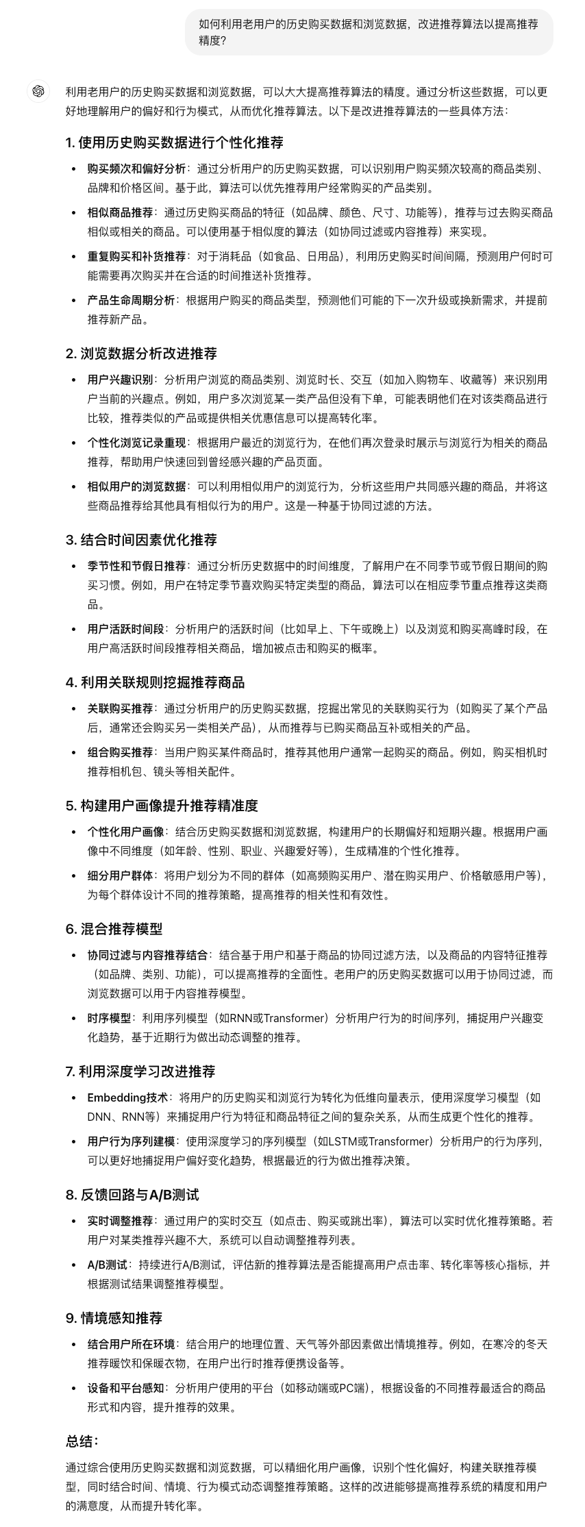 如何利用老用户的历史购买数据和浏览数据,改进推荐算法以提高推荐精度?