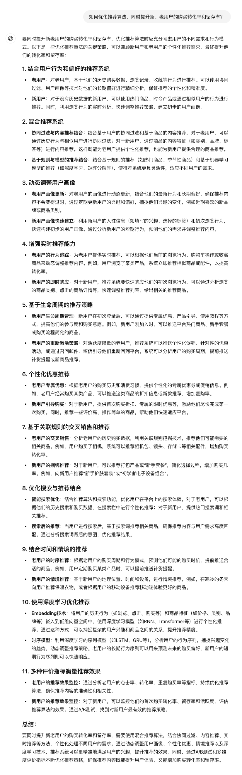 如何优化推荐算法,同时提升新、老用户的购买转化率和留存率?