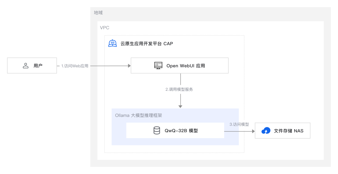 本文详细介绍如何将 QwQ-32B 开源模型部署到函数计算 FC(Function Compute),并通过云原生应用开发平台 CAP(Cloud Application Platform)实现 Ollama 和 Open WebUI 两个 FC 函数的部署。具体来说,Ollama 负责托管 QwQ-32B-GGUF 模型,而 Open WebUI 则用于提供用户界面,支持与模型的交互。