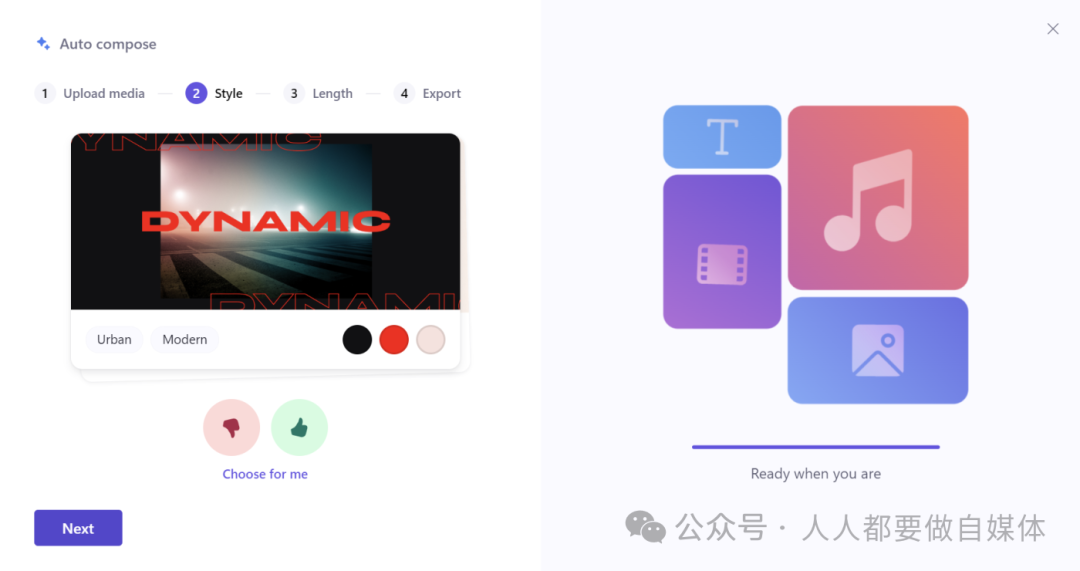 当你用语音与 Copilot 交谈时,情况会更有趣。Windows 语音输入功能非常优秀,将你说的话直接传送给 AI。它用语音回应,让你感觉仿佛在和你的电脑对话。现在想象一下,只通过说出我上面描述的操作:你无需切换到其他应用进行快速记笔记、进行快速事实检查或发送简短的电子邮件——所有这些都不需要离开手头的工作。 Copilot 在 Clipchamp 中除了聊天体验,AI 也进入了Clipchamp。这个 Microsoft 视频编辑应用提供了一种简单的用户体验来润色你的内容,现在你可以使用 AI 自动生成新项目。上传你的源视频,选择风格并选择一首背景音乐。你将得到一个准备好的视频,带有转场、剪接和色彩丰富的背景。