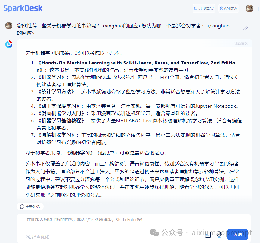 ingFang SC", "Hiragino Sans GB", "Microsoft YaHei UI", "Microsoft YaHei", Arial, sans-serif;font-size: 22px;text-wrap: wrap;outline: 0px;letter-spacing: 0.578px;line-height: 1.4;border-width: 0px;border-style: none;border-color: initial;z-index: 0;visibility: visible;max-inline-size: 100%;"><prompts>ingFang SC", "Hiragino Sans GB", "Microsoft YaHei UI", "Microsoft YaHei", Arial, sans-serif;font-size: 22px;text-wrap: wrap;outline: 0px;letter-spacing: 0.578px;line-height: 1.4;border-width: 0px;border-style: none;border-color: initial;z-index: 0;visibility: visible;max-inline-size: 100%;"><prompt>您能推荐一些关于机器学习的书籍吗?</prompt>ingFang SC", "Hiragino Sans GB", "Microsoft YaHei UI", "Microsoft YaHei", Arial, sans-serif;font-size: 22px;text-wrap: wrap;outline: 0px;letter-spacing: 0.578px;line-height: 1.4;border-width: 0px;border-style: none;border-color: initial;z-index: 0;visibility: visible;max-inline-size: 100%;"><assistant_response>我可以推荐以下几本适合入门的机器学习书籍: 1. "机器学习导论"(An Introduction to Machine Learning)by Ethem Alpaydin 2. "机器学习"(Machine Learning)by Tom M. Mitchell 3. "模式识别和机器学习"(Pattern Recognition and Machine Learning)by Christopher Bishop 这些书籍都很经典,阐述了机器学习的基本概念和算法,适合初学者学习。</assistant_response>ingFang SC", "Hiragino Sans GB", "Microsoft YaHei UI", "Microsoft YaHei", Arial, sans-serif;font-size: 22px;text-wrap: wrap;outline: 0px;letter-spacing: 0.578px;line-height: 1.4;border-width: 0px;border-style: none;border-color: initial;z-index: 0;visibility: visible;max-inline-size: 100%;"><prompt>您认为哪一个最适合初学者?</prompt>ingFang SC", "Hiragino Sans GB", "Microsoft YaHei UI", "Microsoft YaHei", Arial, sans-serif;font-size: 22px;text-wrap: wrap;outline: 0px;letter-spacing: 0.578px;line-height: 1.4;border-width: 0px;border-style: none;border-color: initial;z-index: 0;visibility: visible;max-inline-size: 100%;"><assistant_response>如果您是真正的初学者,我会推荐"机器学习导论"这本书。这本书阅读起来比较通俗易懂,对基本概念和数学推导的解释也比较浅显。"机器学习"和"模式识别与机器学习"则会稍微难懂一些,需要读者具备一定的数学基础。无论选择哪一本,都建议先打好基础,多动手编程实践。</assistant_response>ingFang SC", "Hiragino Sans GB", "Microsoft YaHei UI", "Microsoft YaHei", Arial, sans-serif;font-size: 22px;text-wrap: wrap;outline: 0px;letter-spacing: 0.578px;line-height: 1.4;border-width: 0px;border-style: none;border-color: initial;z-index: 0;visibility: visible;max-inline-size: 100%;"></prompts>