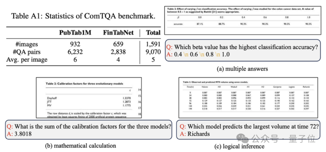 此外,为了更好地评估各种模型在现实世界表格图像上的TQA性能,作者还构建了一个复杂的TQA数据集(ComTQA)。